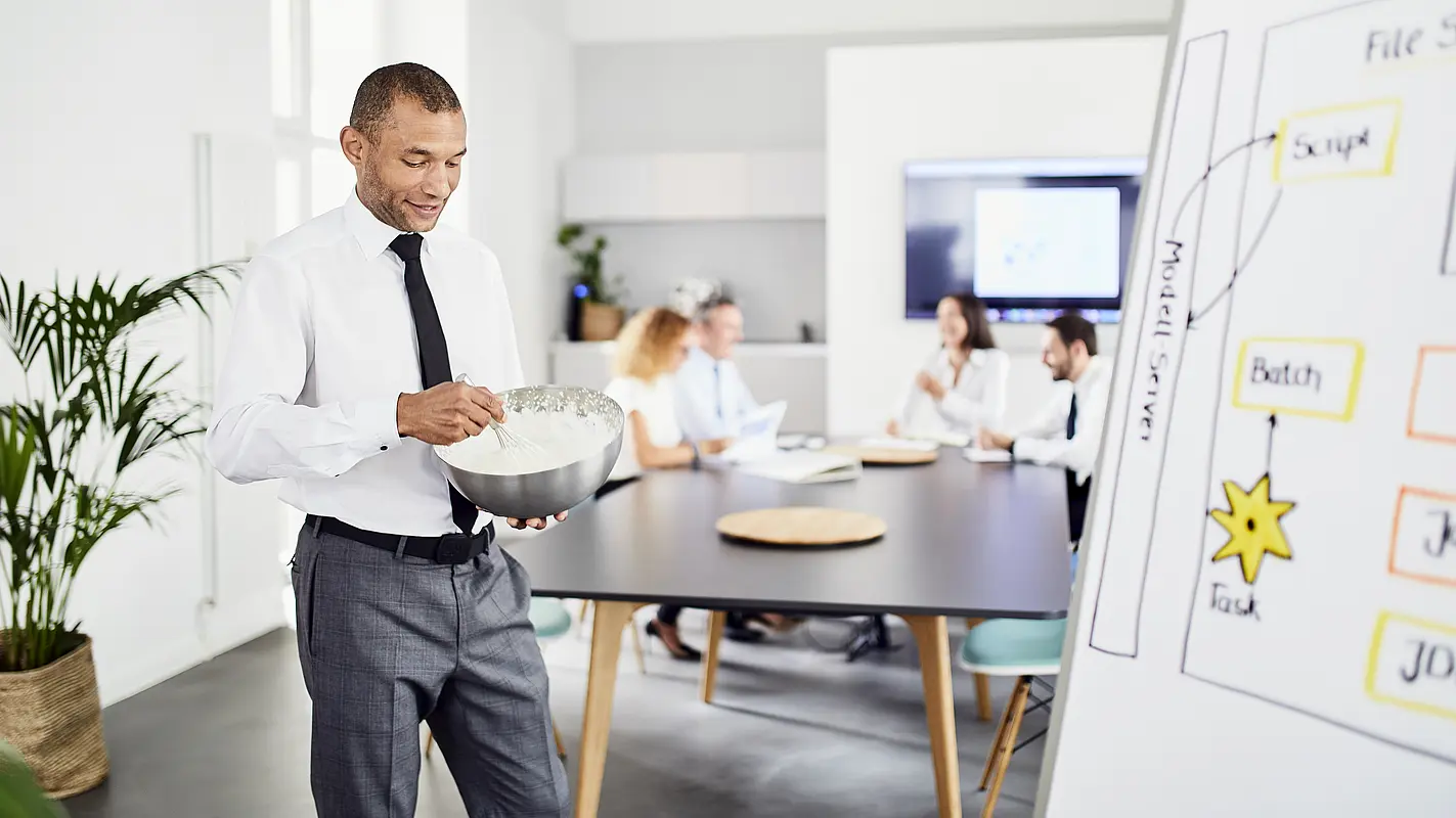 His artistic training as a certified actor and subsequent work as a coach for IT managers predestined him to be a moderator between worlds: Aljoscha Zinflou gently combines the free flight of thoughts with the necessary grounding for realistic problem-solving, the power of imagination with the dominance of hard facts.